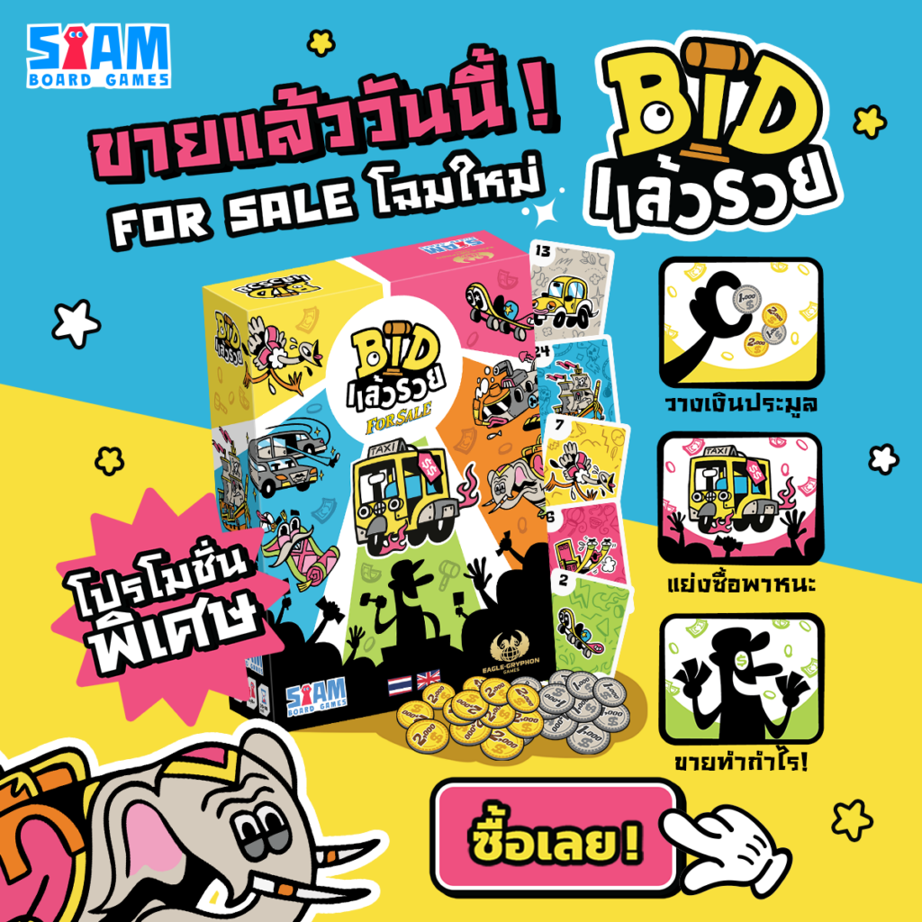 BID แล้วรวย บอร์ดเกม FOR SALE ในตำนานมาพร้อมโฉมใหม่ 2026 กับบอร์ดเกมการประมูลสุดเร้าใจที่ต้องเชือดเฉือนกันกับคู่แข่งคนอื่น...