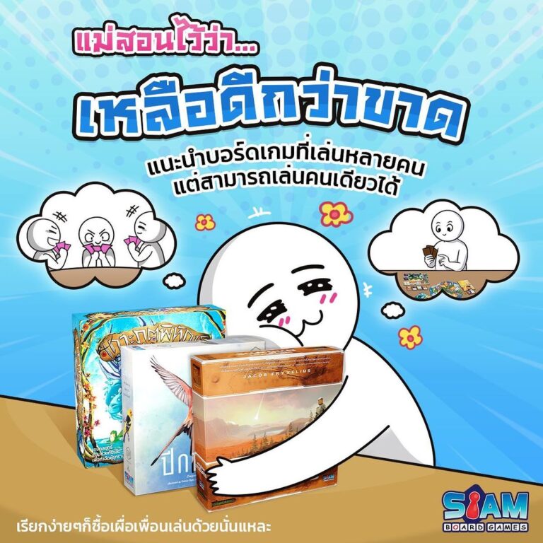 แม่สอนไว้เหลือดีกว่าขาด เราเลยซื้อบอร์ดเกมซะเลย ไม่มีใครเล่นด้วยก็ยังสบายใจ เพราะบอร์ดเกมนี้เล่นหลายคนก็ได้ เล่นคนเดียวก็ดี