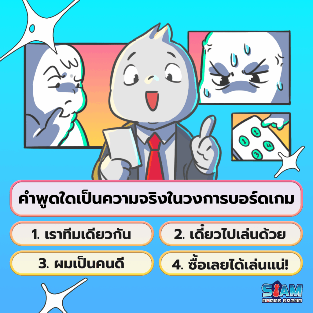 เหล่าบอร์ดเกมเมอร์คงได้พบเจอประสบการณ์จากการเล่นบอร์ดเกมมาบ้าง มาทายกันว่าคำพูดใดเป็นความจริงในวงการบอร์ดเกม?