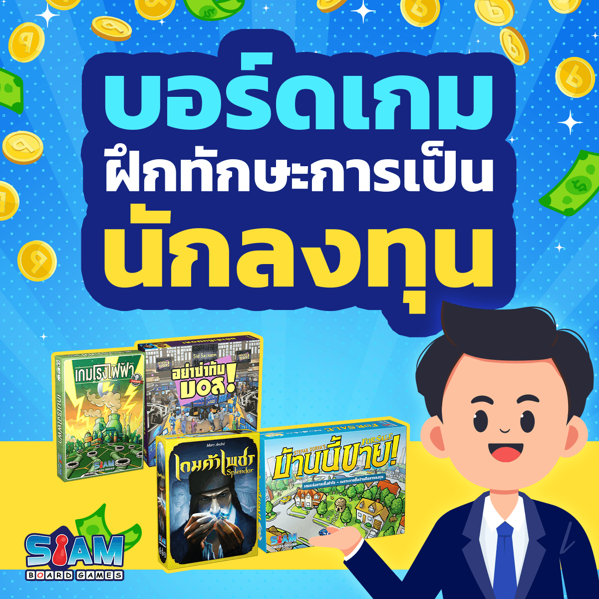 ปลุกความเป็นนักลงทุนในตัวของคุณออกมา พบกับบอร์ดเกมที่จะพาคุณมาดีลธุรกิจ ใช้เงินเพื่อขยับขยายกิจการ หรือค้าขายให้ได้ผลกำไรมากยิ่งขึ้นกับ “บอร์ดเกมฝึกทักษะการเป็นนักลงทุน”