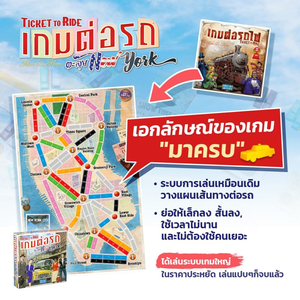 จากกล่องใหญ่ เกมต่อรถไฟ มาเป็น เกมต่อรถตะลุย New York มาพร้อมเอกลักษณ์ของเกมมาครบ ทั้งระบบการเล่นที่ต้องวางแผนเส้นทางต่อรถเหมือนกัน แค่ถูกย่อมาให้เล็ก และสั้นลง ทั้งยังใช้เวลาและจำนวนคนในการเล่นที่น้อยลง ได้เล่นระบบเกมใหญ่ในราคาประหยัด คุ้มค่าสุดๆ