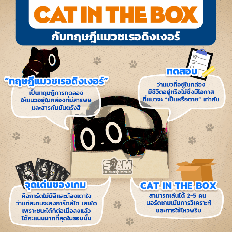 หากพูดถึงบอร์ดเกมสำหรับทาสแมวต้องห้ามพลาดเกมนี้ "Cat In The Box" บอร์ดเกมน้องเหมียวสุดน่ารักแท้จริงแล้วมีแรงบันดาลใจในการสร้างมาจากทฤษฎีสุดหลอนอย่าง “ทฤษฎีแมวชเรอดิงเงอร์”