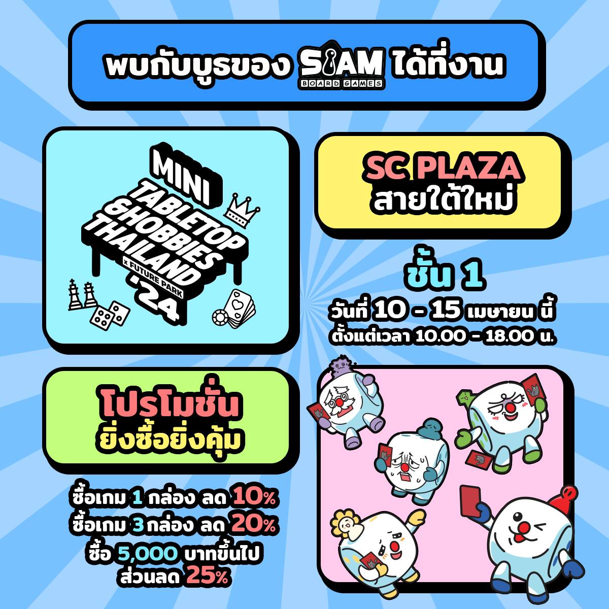 ติดตามหรือสอบถามรายละเอียดเพิ่มเติมได้ทาง ทางเว็บไซต์ Siam Board Games FACEBOOK: Siam Board Games LINE : @siamboardgames หรือโทร. 094-565-8800