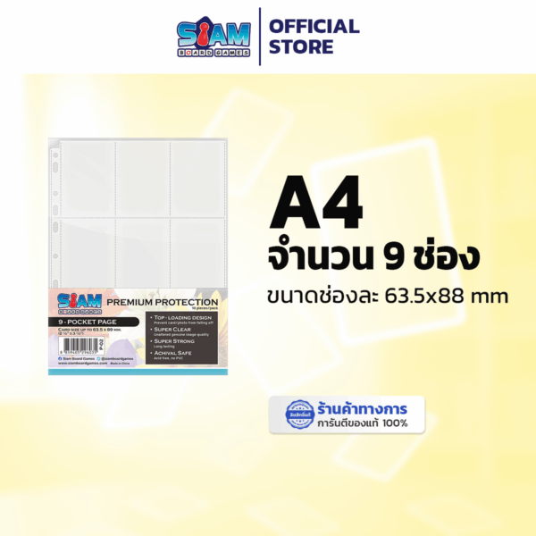 – มี 9 ช่อง ใส่พร้อมซองขนาด (White 63.5 x 88 มม.) ได้